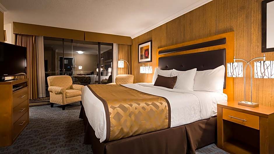 This room overlooks the residential side of the hotel and features: one king bed, one double sofa bed, separate eating area, mini-fridge, microwave, 37" LCD TV.