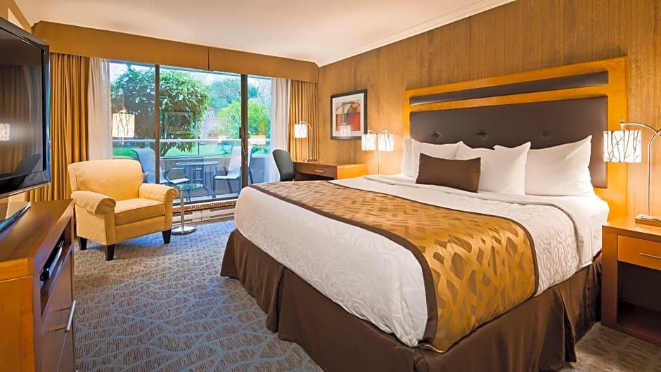 This room overlooks the residential side of the hotel and features: one king bed, one double sofa bed, separate eating area, mini-fridge, microwave, 37" LCD TV.